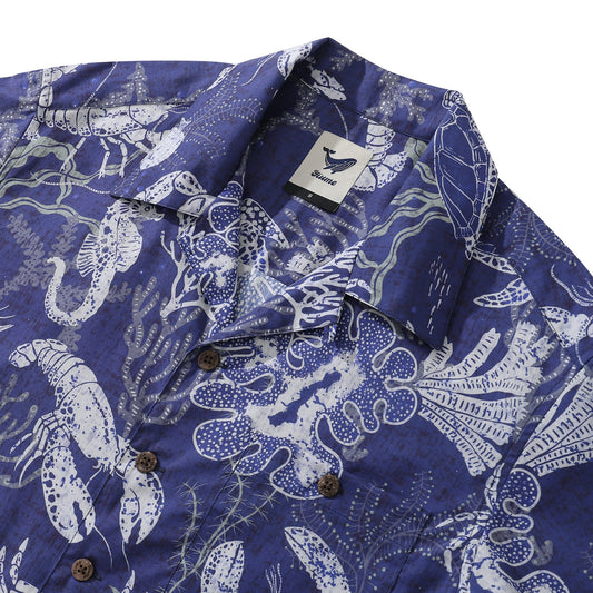 Bluey Hawaiian Shirt For Men Corals and Lobsters Shirt Camp Collar 100% Cotton Shirt