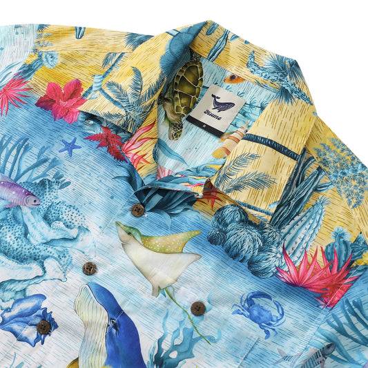 Hawaiian Shirt For Men Cetacean Shirt Camp Collar 100% Cotton