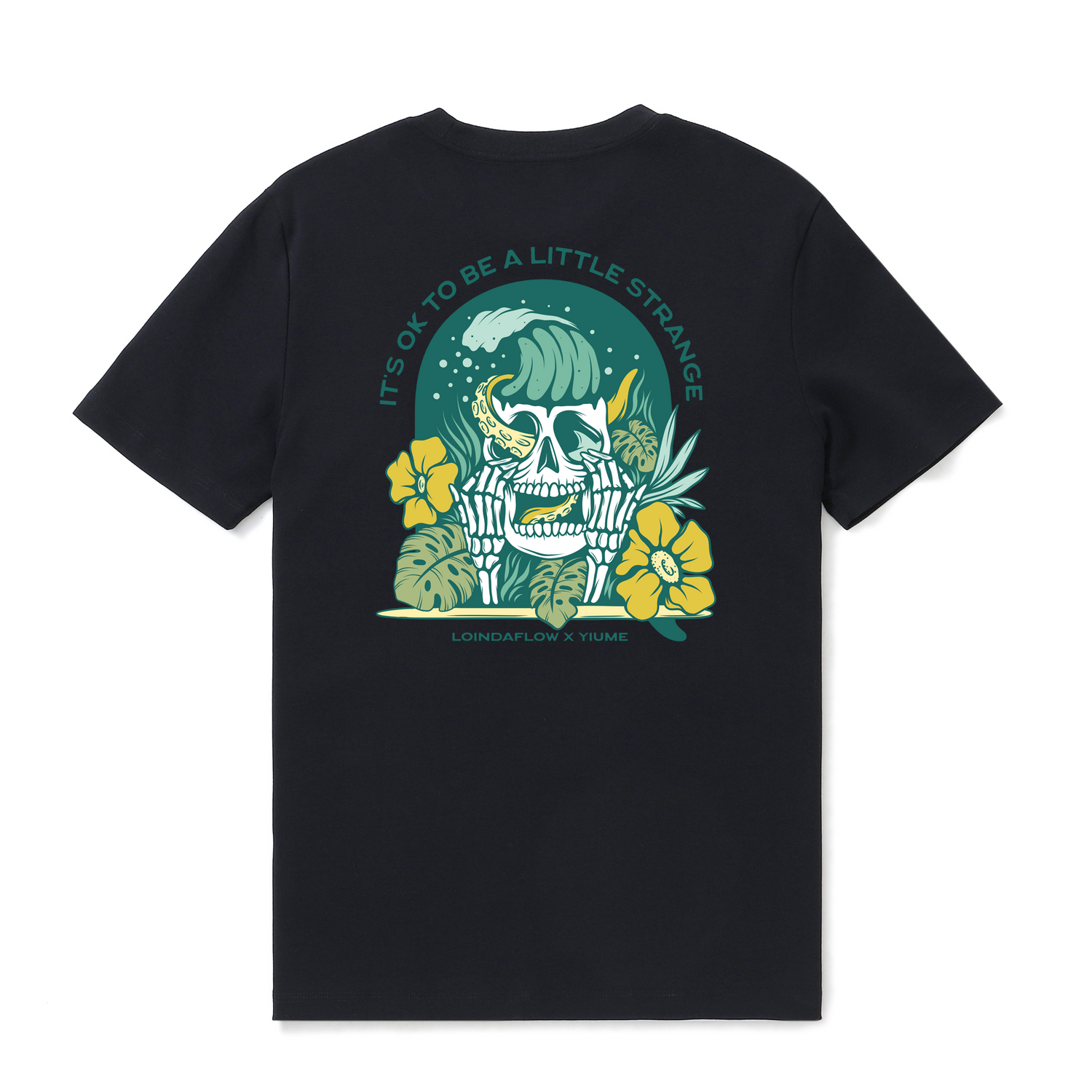 Hawaiian Tee For Men Strange Skull By Loindaflow Tee Crew Neck 100% Cotton - BLACK