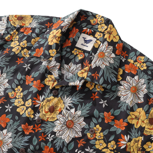 Hawaiian Shirt For Men Autumn Garden Print Shirt Camp Collar 100% Cotton