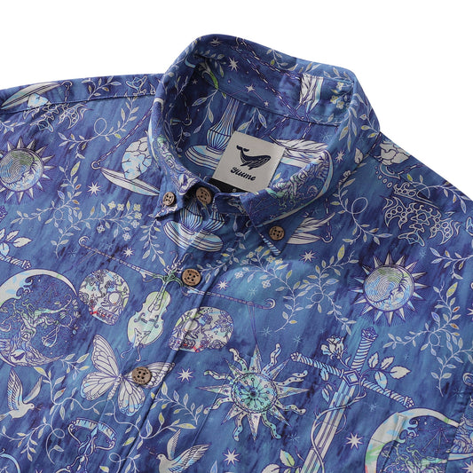 Blue Hawaiian Shirt For Men Short Sleeve Ocean Sonata Shirt Button-down Cotton Shirt