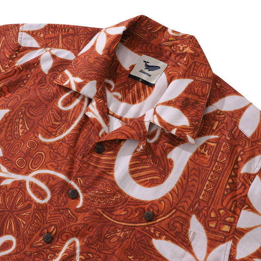 Red Hawaiian Shirt For Men Tiki Hawaii Shirt Camp Collar 100% Cotton Shirt