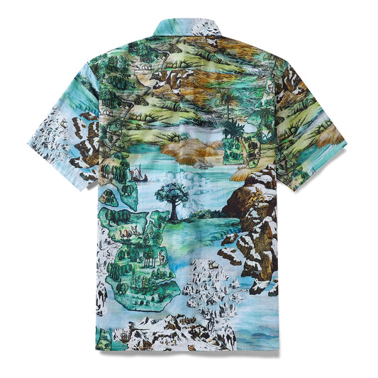 Men's Hawaiian Shirt 1950s Vintage Map Print Cotton Button-down Short Sleeve Aloha Shirt