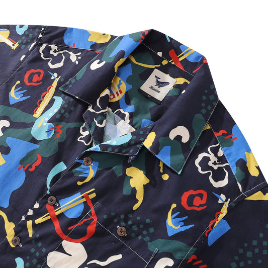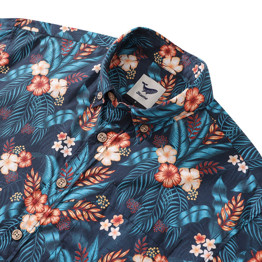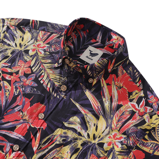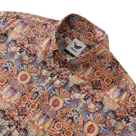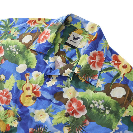 Men's Hawaiian Shirt Tropical Symphony Print Cotton Button-down Short Sleeve Aloha Shirt