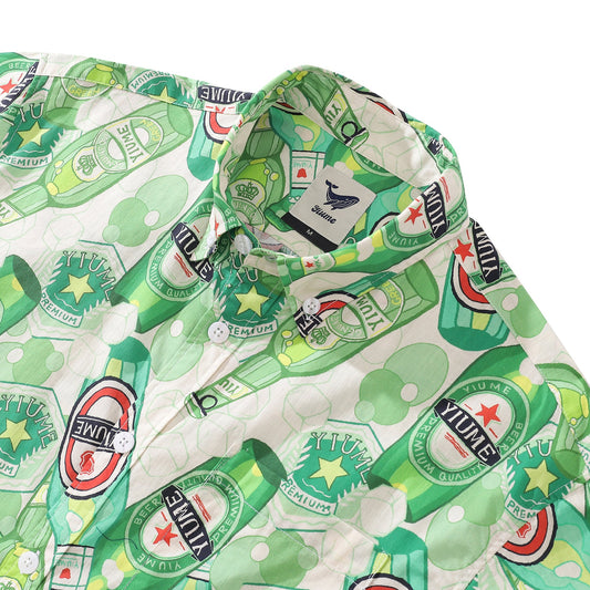 Men's Hawaiian Shirt Green Bubble Print Cotton Button-down Short Sleeve Aloha Shirt