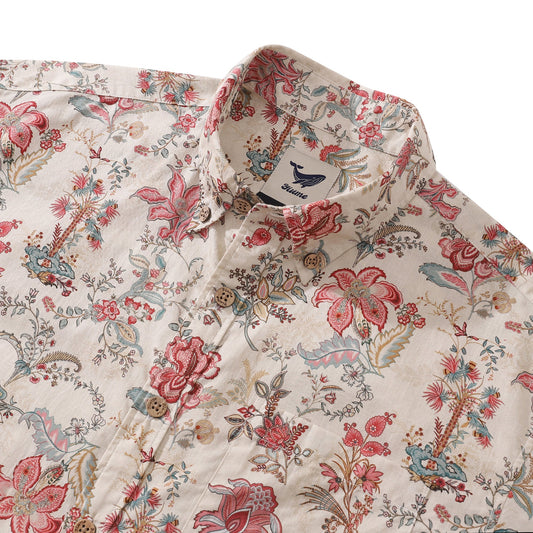 Men's Hawaiian Shirt Vintage Flowers Print Cotton Button-down
