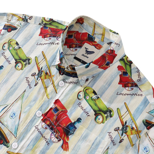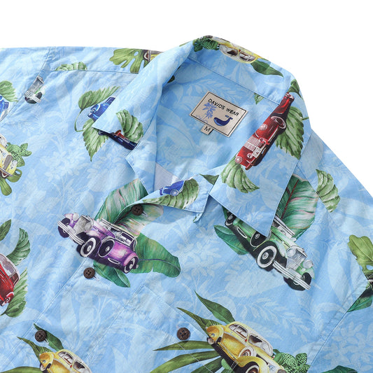 Hawaiian Shirt For Men Old-Fashioned Car Shirt Camp Collar 100% Cotton