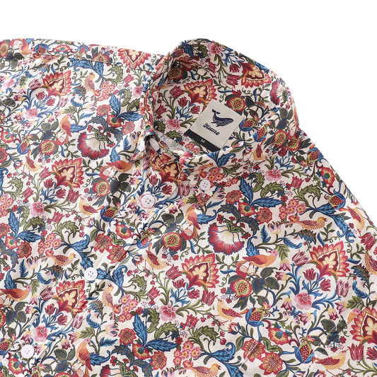 Men's Hawaiian Shirt Symphony of Birds Print Cotton Button-down Short Sleeve Aloha Shirt
