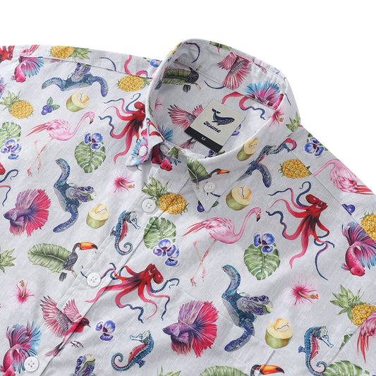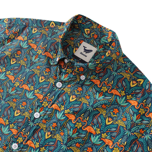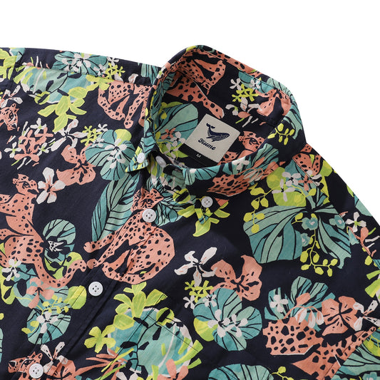 Men's Hawaiian Shirt Vibrant Jungle Print Cotton Button-down Short Sleeve Aloha Shirt