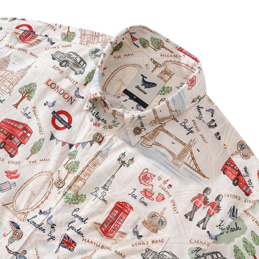 Men's Hawaiian Shirt Icons of Old London Town Print By Noopur Cotton Button-down Short Sleeve Aloha Shirt
