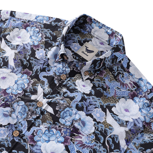 Hawaiian Shirt For Men Cranes Over Flowers By Véronique Shirt Camp Collar 100% Cotton