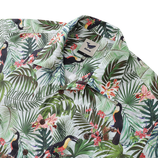Men's Hawaiian Shirt Tropical Rainforest Print Cotton Button-down Short Sleeve Aloha Shirt