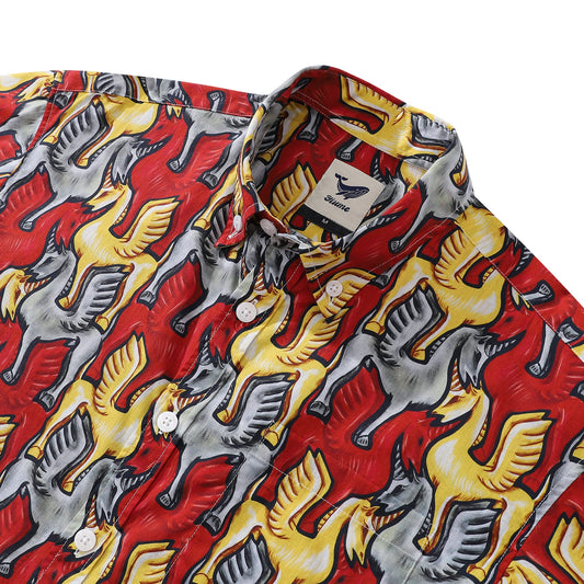 1980s Vintage Men's Hawaiian Shirt Unicorn Print Cotton Button-down Short Sleeve Aloha Shirt