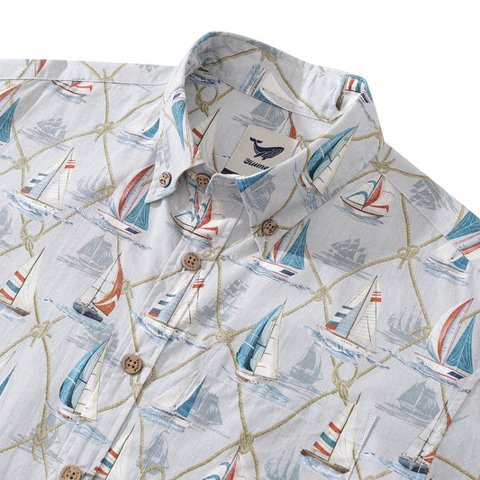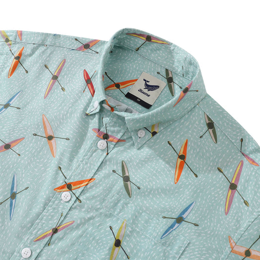 Men's Hawaiian Shirt Sea Kayaks Print By Katie O'Shea Design Cotton Button-down Short Sleeve Aloha Shirt