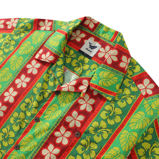 Hawaiian Shirt For Men Vertical Garden Shirt Camp Collar 100% Cotton