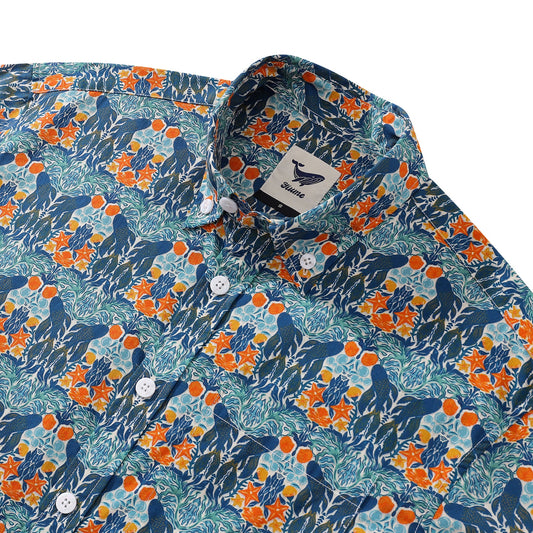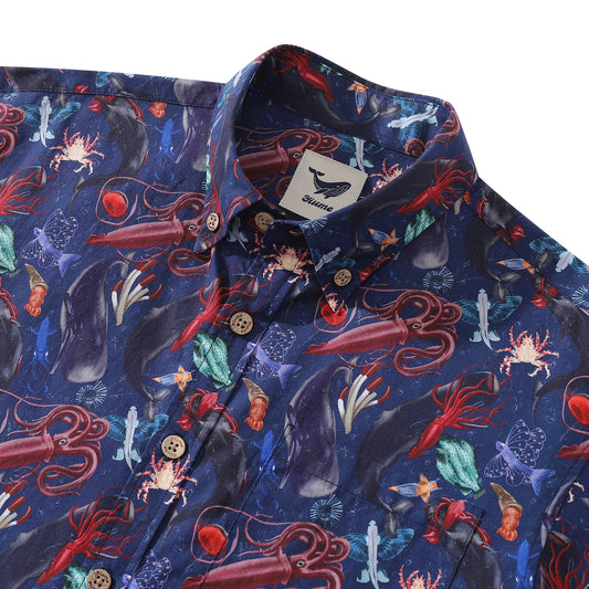 Men's Hawaiian Shirt Under The Sea World Print By Sara Cotton Button-down Short Sleeve Aloha Shirt