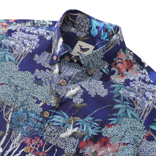 Men's Hawaiian Shirt Mystical Garden Print Cotton 1940s Vintage Short Sleeve Aloha Shirt