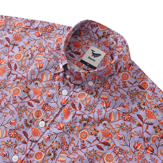 Men's Hawaiian Shirt Purple Orange Multicolored Print Cotton Button-down Short Sleeve Aloha Shirt