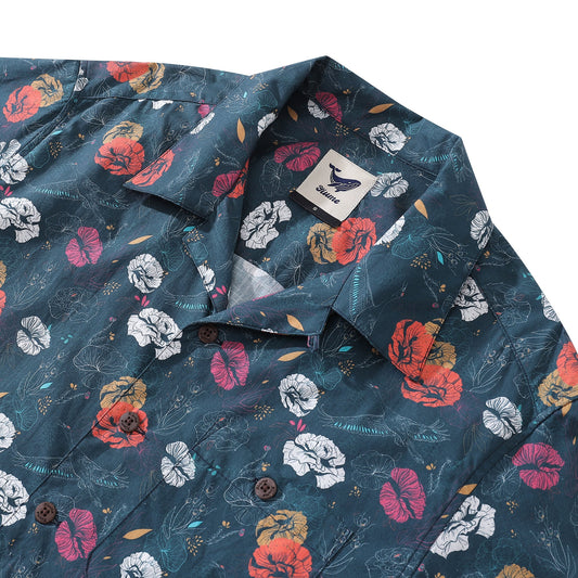 Hawaiian Shirt For Men Sea of Flowers Shirt Camp Collar 100% Cotton