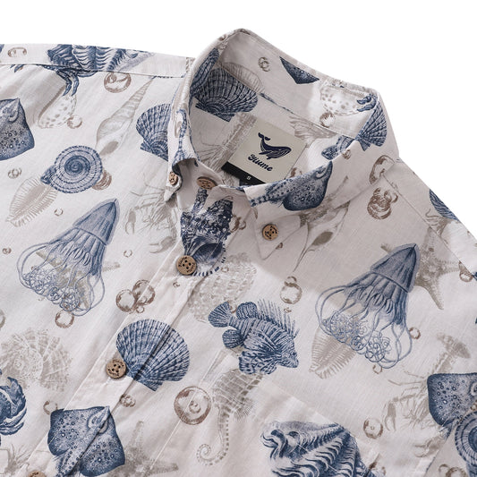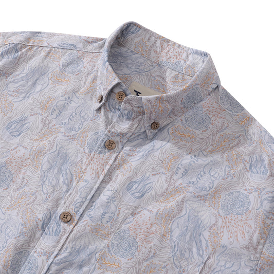 Men's Hawaiian Shirt Jellyfish Seascape By Andrea Leonelli Cotton Button-down Short Sleeve Aloha Shirt