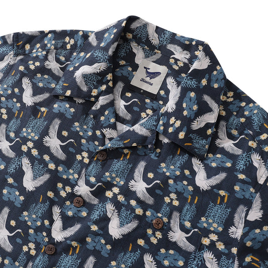Summer Hawaiian Shirt For Men White herons in the lagoon By Maria Elena COCO Print Shirt Camp Collar 100% Cotton