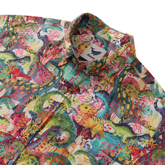Men's Hawaiian Shirt Lost at the Dinosaur Jamboree By Katherine Quinn Cotton Button-down Short Sleeve Aloha Shirt