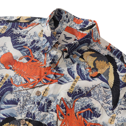 Mens Casual Hawaiian Shirt Cock Lobster Chart Cotton Short Sleeve Aloha Shirt