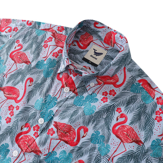 Men's Funky Hawaiian Shirt Flamingo Bay Print Designed by Maria Elena COCO Cotton Button-down
