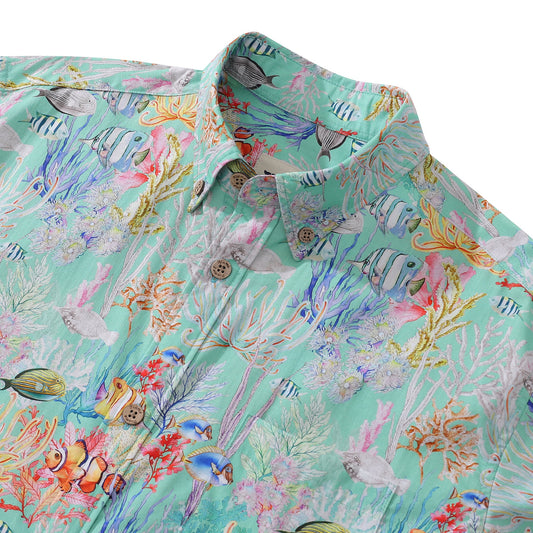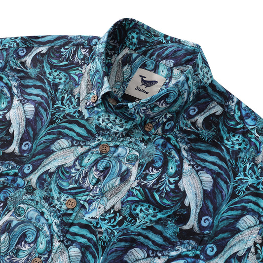 Men's Colorful Fish Shirt Button-down Hawaiian Shirt Cotton Short Sleeve Aloha Shirt