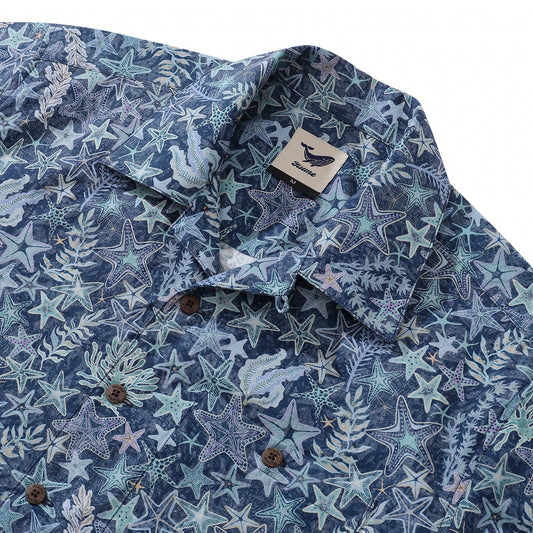 Hawaiian Shirt For Men Sea Stars and Coral Shirt Camp Collar 100% Cotton
