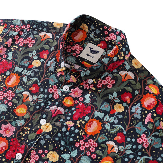 Men's Hawaiian Shirt 1960s Vintage Flower Garden Print Cotton Button-down Short Sleeve Aloha Shirt