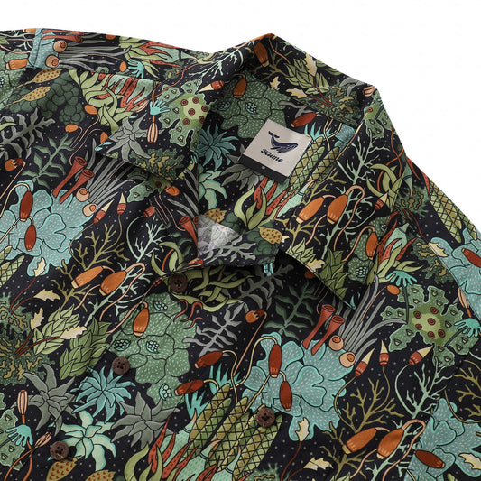 Men's Hawaiian Shirt Mushrooms By Eloise Cotton Button-down Short Sleeve Aloha Shirt