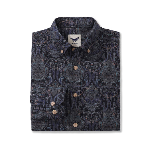 Hand Painted Paisley Print 100% Cotton Button-down Shirt