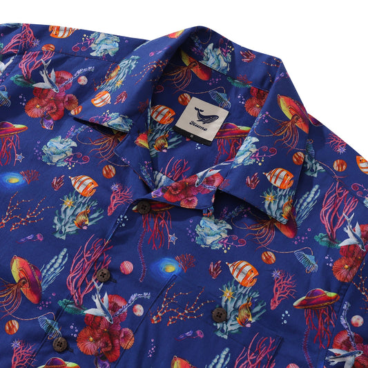Men's Hawaiian Shirt Mysteries of the Deep Sea Print Cotton Button-down Short Sleeve Aloha Shirt New customer exclusive