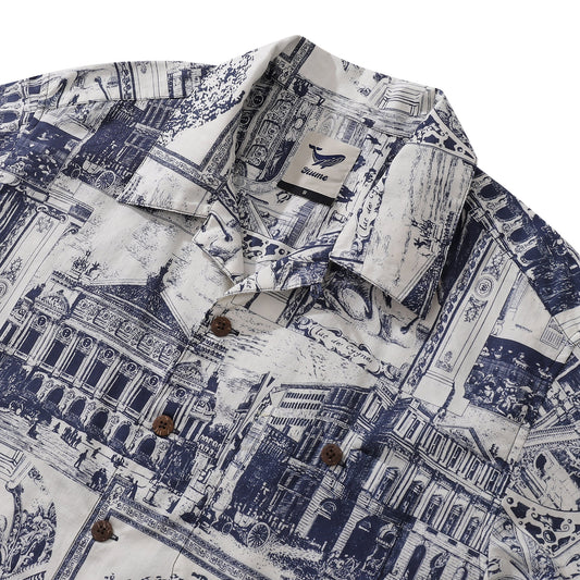 Men's Hawaiian Shirt Silver Antiquity Cotton Button-down Short Sleeve Aloha Shirt