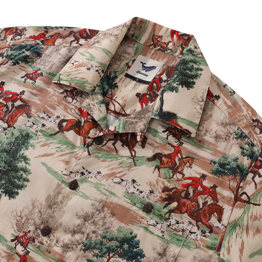 Hawaiian Shirt For Men Field Horse Racing Shirt Camp Collar 100% Cotton