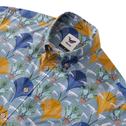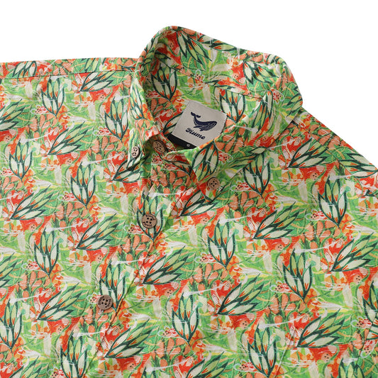 Men's Hawaiian Shirt Birds of Paradise Print By Fizah Malik Cotton Button-down Short Sleeve Aloha Shirt