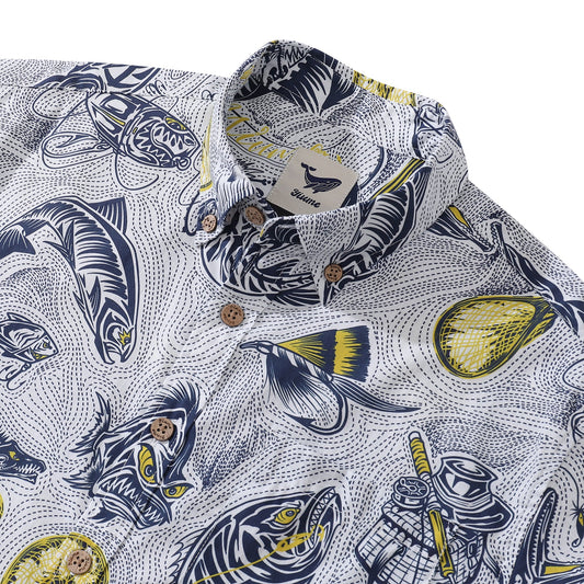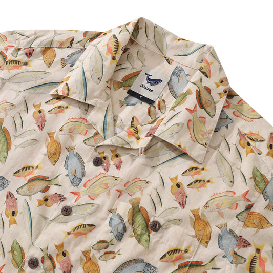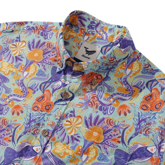 Hawaiian Shirt For Men Dancing Fish Shirt Camp Collar 100% Cotton