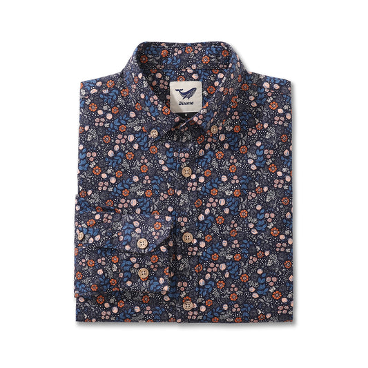 Men's Hawaiian Shirt Falla Pattern By Isoletto Design Cotton Button-down Long Sleeve Aloha Shirt