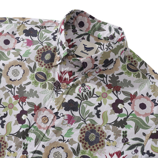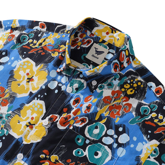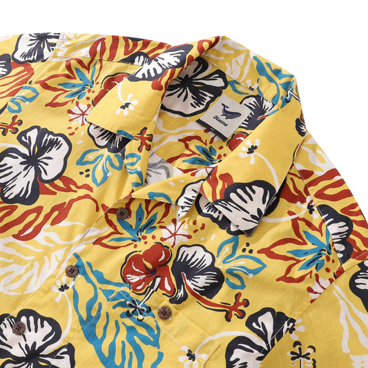 Men's Hawaiian Shirt Tropical Hibiscus Floral Cotton Aloha Shirt Button Down