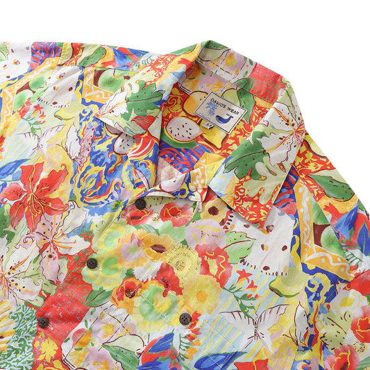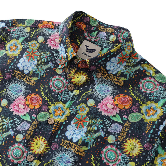 Men's Hawaiian Shirt Floral Circus By Sarah Cotton Button-down Short Sleeve Aloha Shirt
