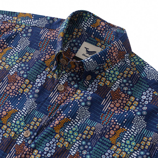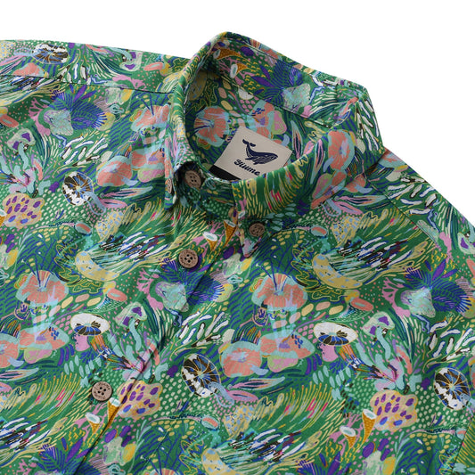 Men's Hawaiian Shirt Algae Movement By Lucille Pattern Cotton Button-down Short Sleeve Aloha Shirt