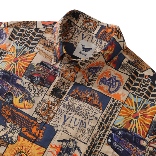 Men's Hawaiian Shirt Fire and Racing Cotton Button-down Short Sleeve Aloha Shirt