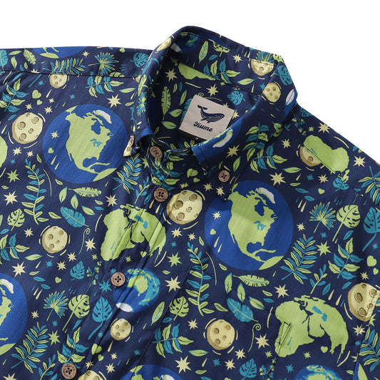 Men's Hawaiian Shirt Blue Planet Earth Day Shirt Cotton Button-down Short Sleeve Aloha Shirt