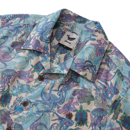 Hawaiian Shirt For Men Seaquake By Nicole Bustamante Print Shirt Camp Collar 100% Cotton