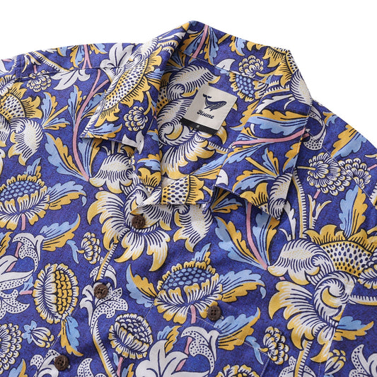 Hawaiian Shirt For Men Azure Garden Print Shirt Camp Collar 100% Cotton