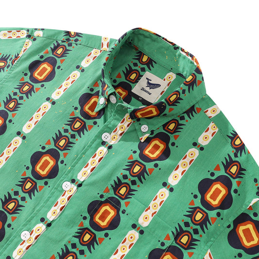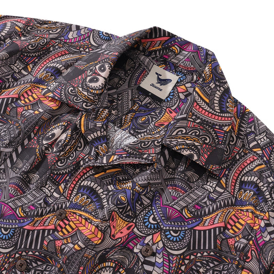 Men's Aloha Shirt Cotton Short Sleeve Button Down Paper-cut Art Print Hidden Pocket