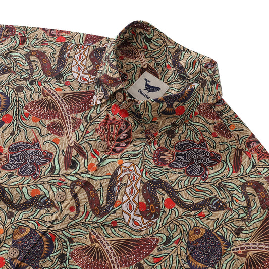 Men's Hawaiian Shirt Coral Reef Shirt 100% Cotton Button-down Short Sleeve Aloha Shirt