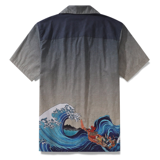 Hawaiian Shirt For Men Big Wave Boat Shirt Camp Collar 100% Cotton