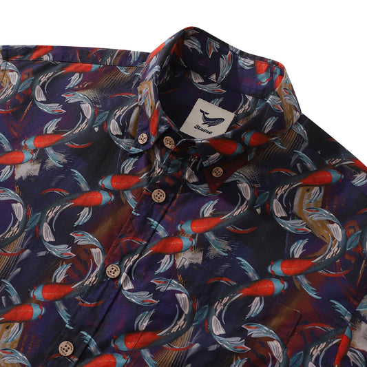 Men's Hawaiian Shirt Good Fortune Koi Print Cotton Button-down Short Sleeve Aloha Shirt